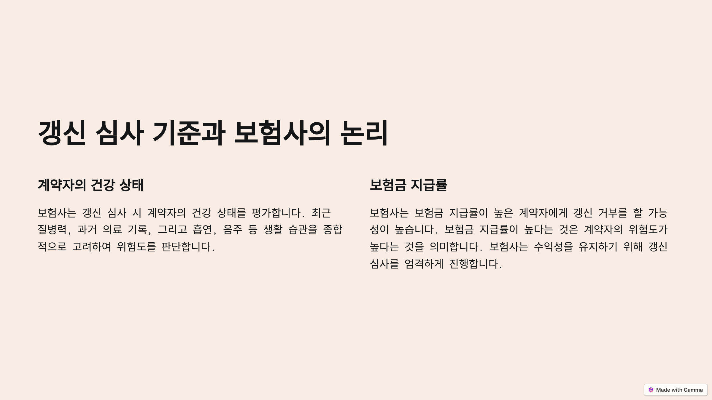 보험사가 갱신 여부를 결정할 때는 다양한 심사 기준을 적용해요. 이 기준들은 주로 계약자가 보험금을 얼마나 많이 청구했는지, 건강 상태가 어떻게 변화했는지 등을 중심으로 진행돼요.