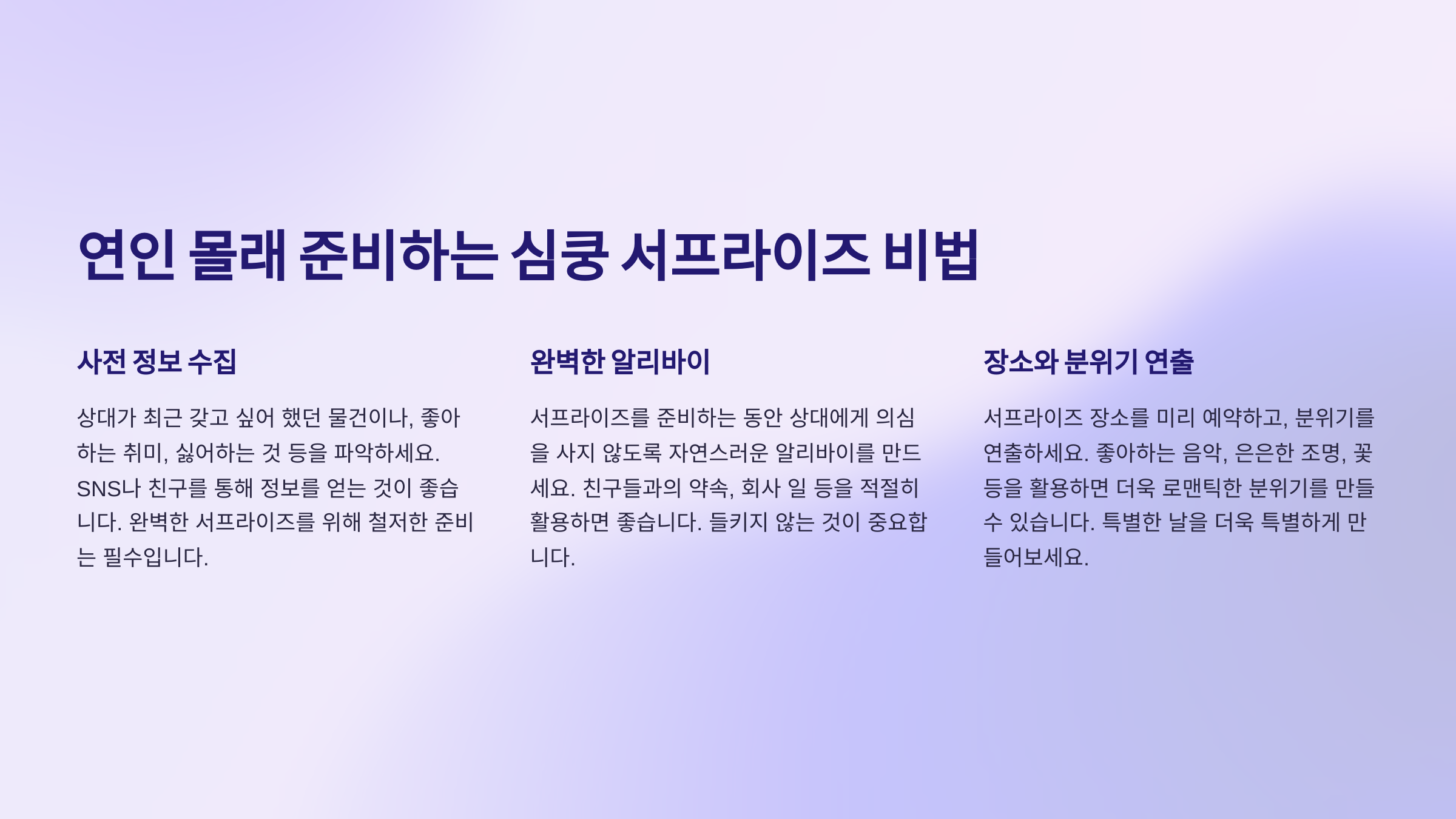 이제 연인을 위한 서프라이즈 이벤트까지 구체적으로 알아볼까요? 💌